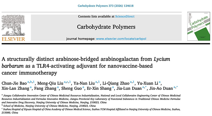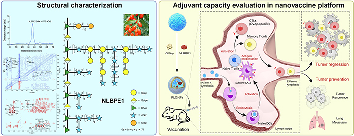 日前,我中心团队在国际学术期刊Carbohydrate Polymers(中科院一区,IF:12.5)期刊上在线发表了题为A structurally distinct arabinose-bridged arabinogalactan from Lycium barbarum as a TLR4-activating adjuvant for nanovaccine-based cancer immunotherapy的研究工作。该研究首次从枸杞子中分离并解析了一种均一化多糖NLBPE1,揭示了其作为疫苗佐剂在肿瘤免疫治疗中的应用潜力。